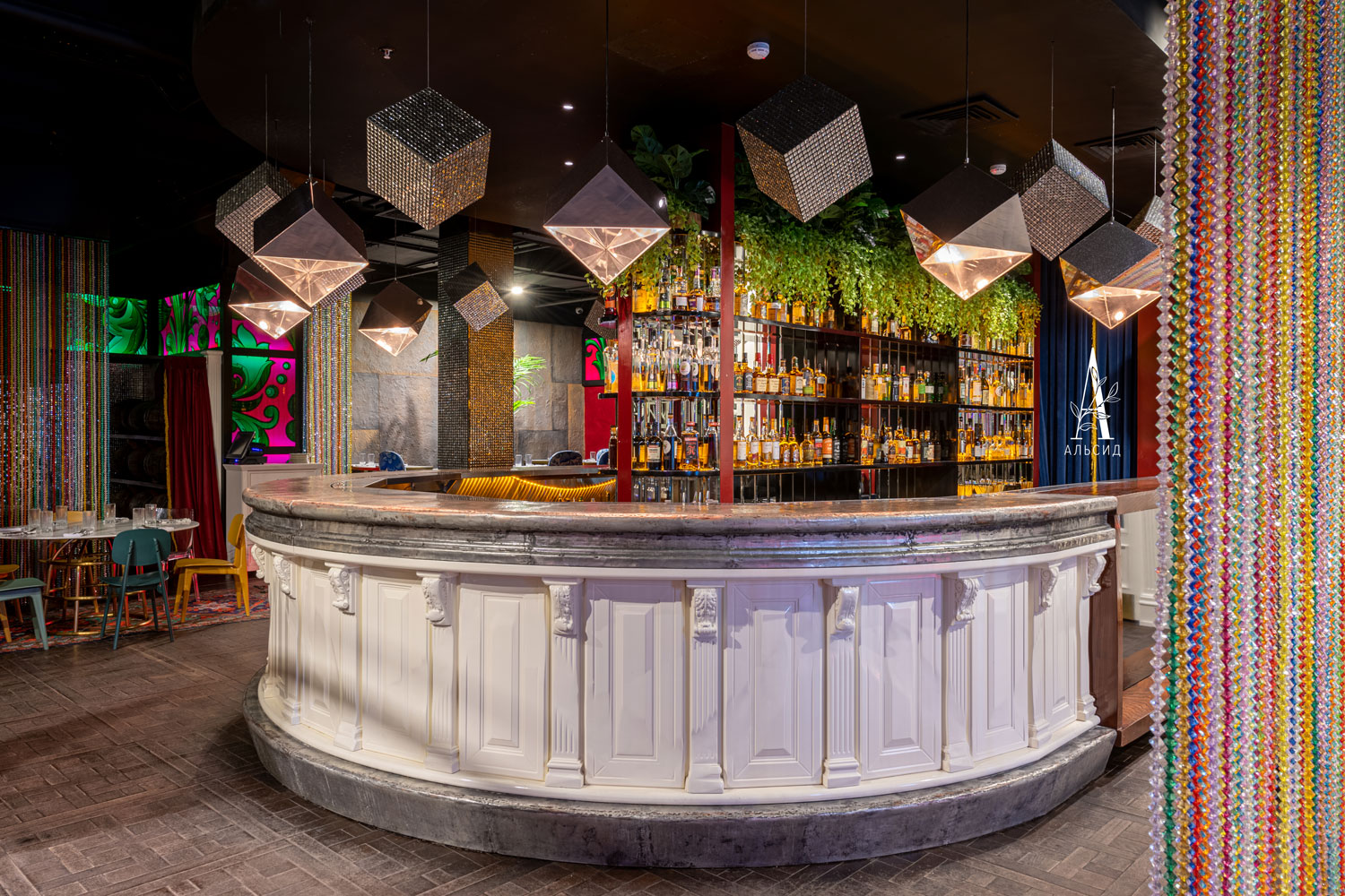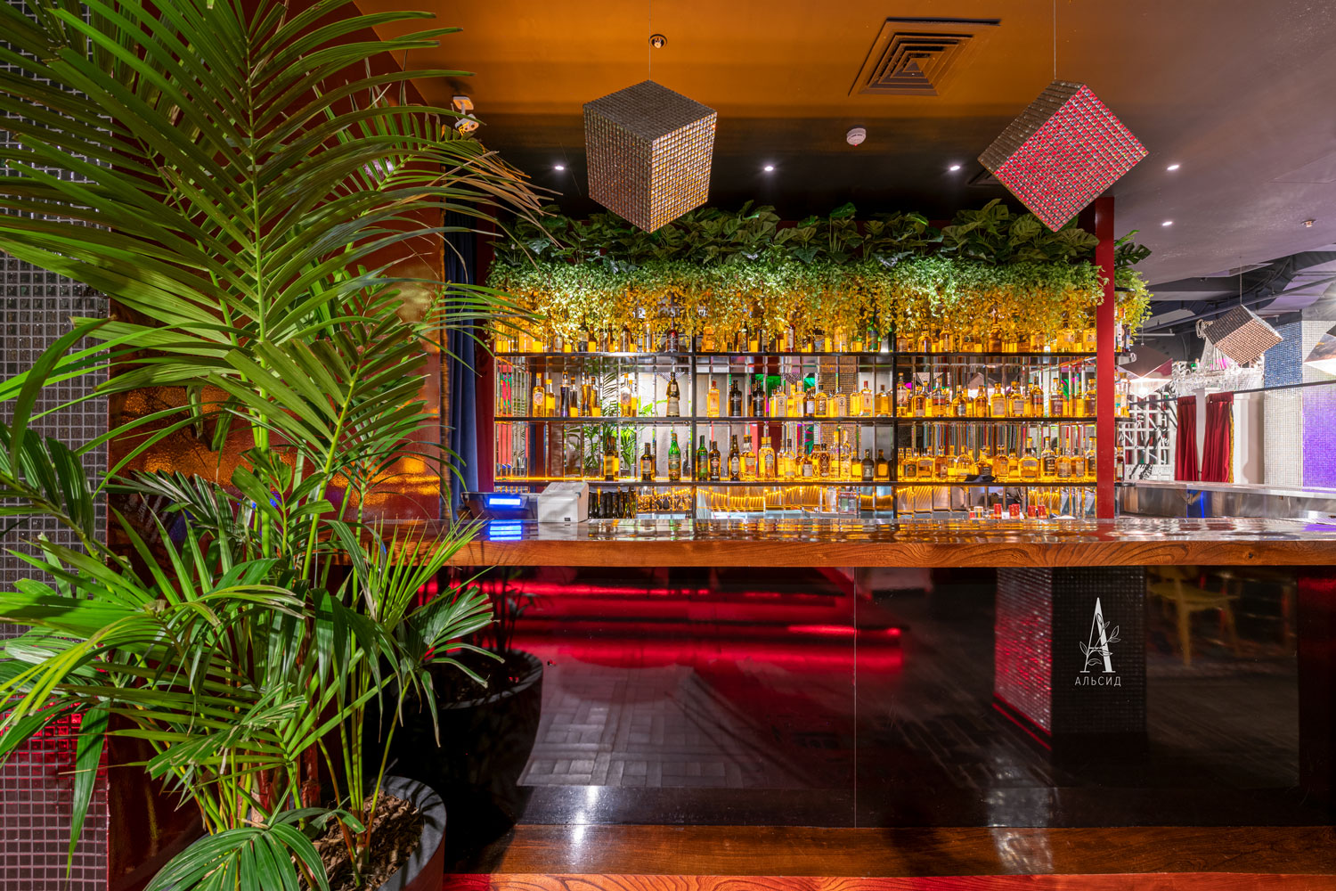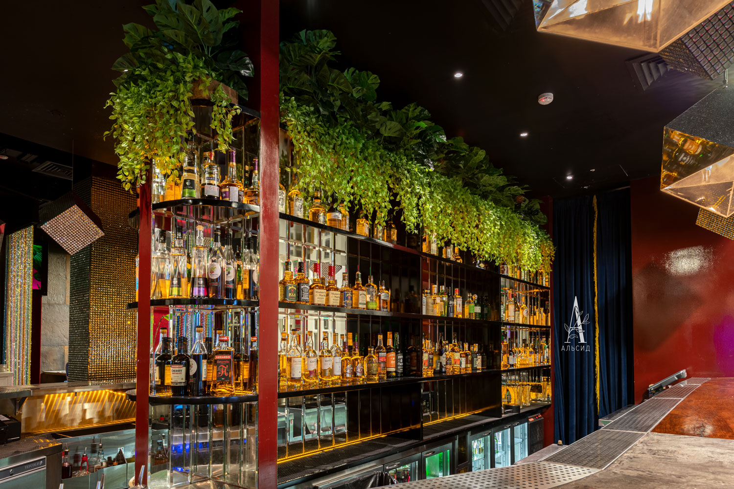 Одним из удачных решений оформления барной стойки является декор из искусственных растений. В ресторане, где внимание уделяется к каждым мелочам и оптимизации процессов, композиция с монстерой и традесканцией отлично заменяет живые растения, предоставляя возможность забыть об уходе и поддержании определенных условий. ;