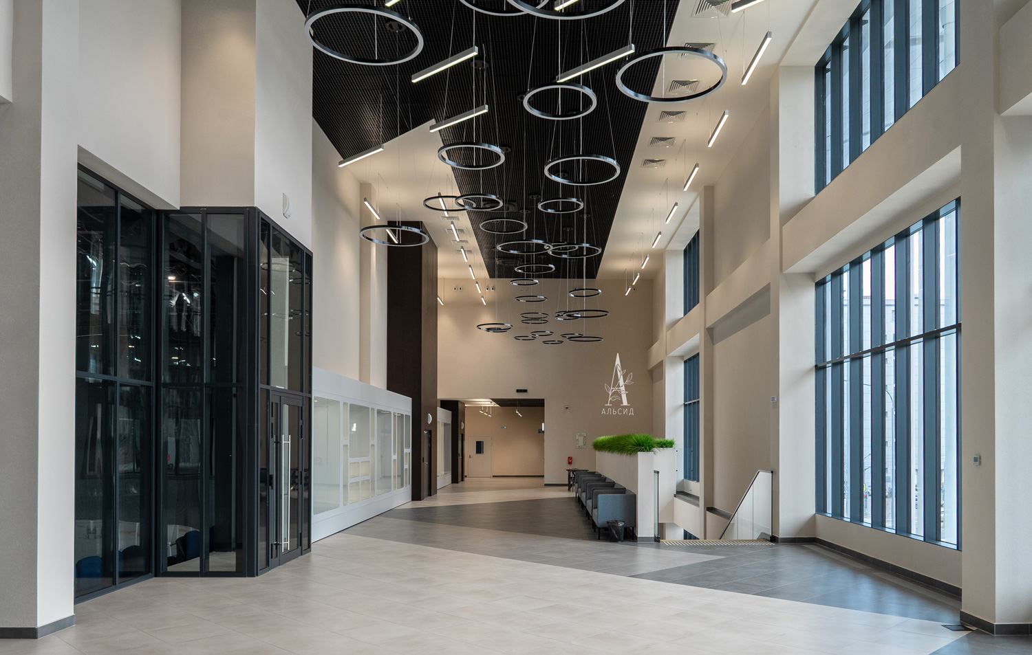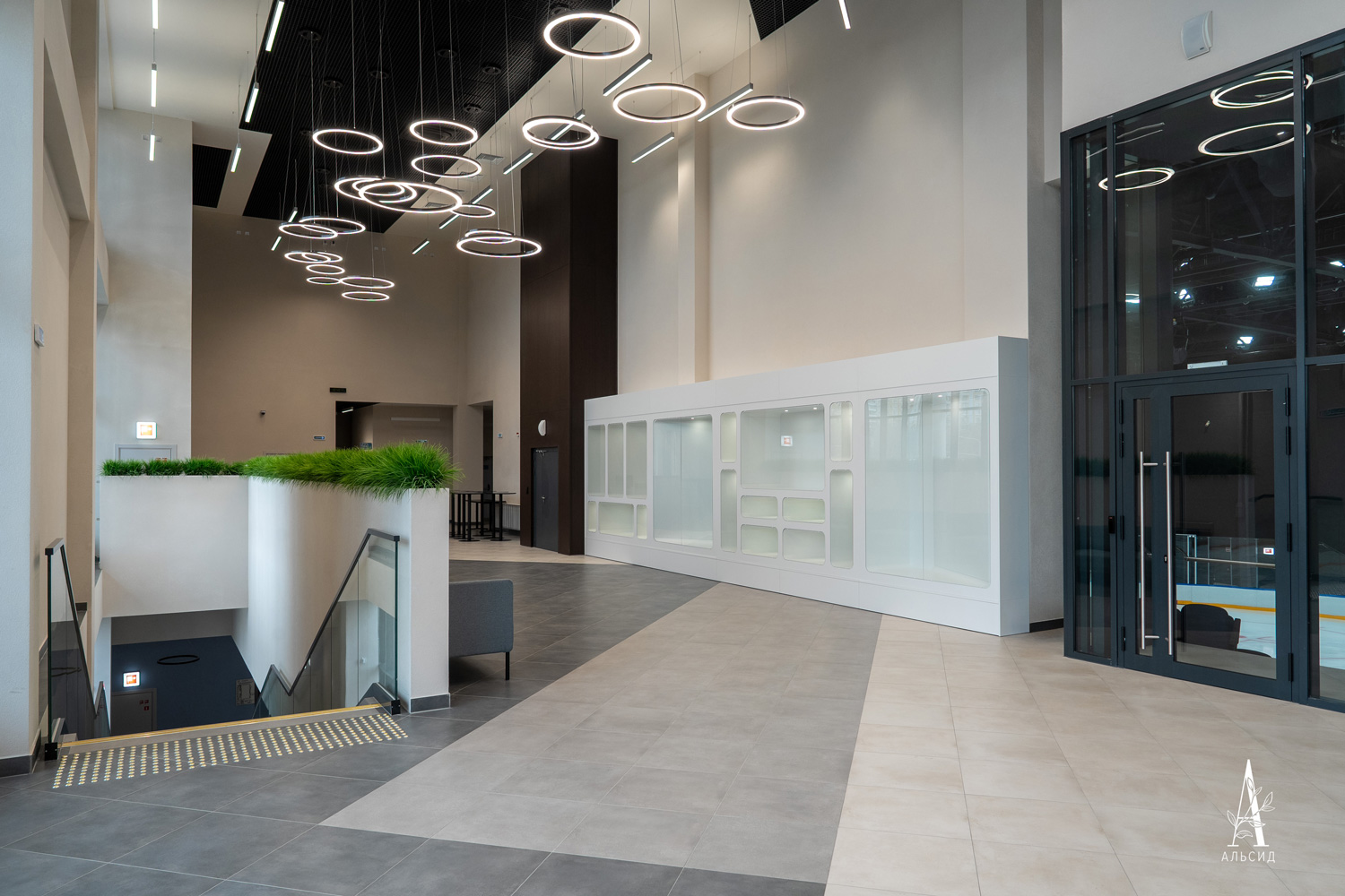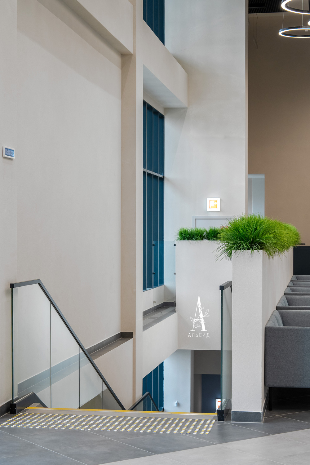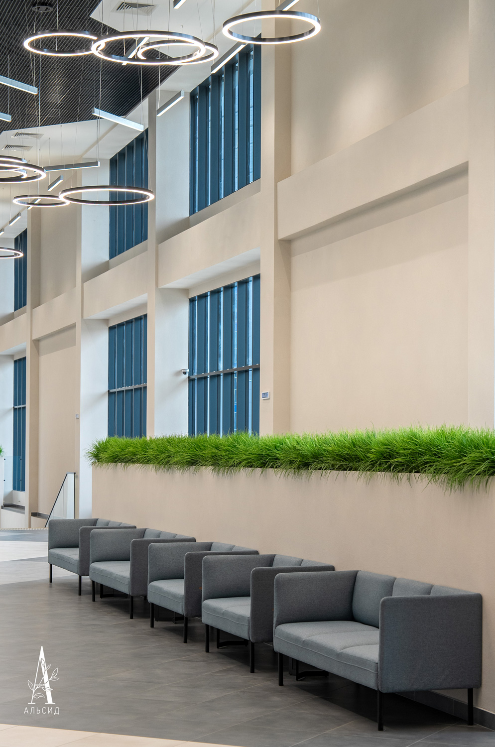 В Центре Фигурного Катания им. Э.Тутберидзе интерьер холла выполнен в лаконичном минимализме, поэтому требовалось озеленение без излишеств. Осока в боксах идеально подошла для обрамления полустен и освежила пространство.;
