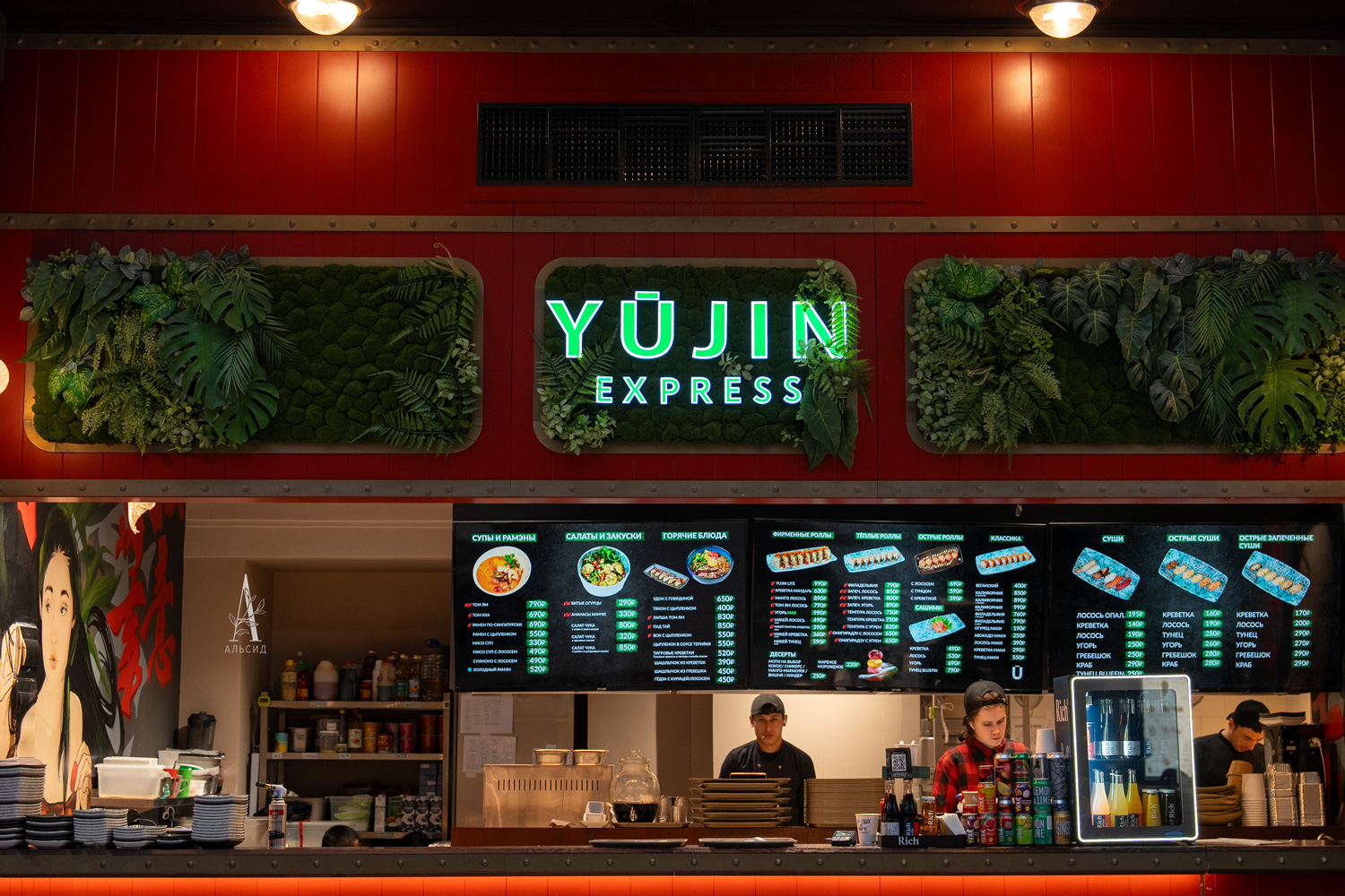 Логотип компании в фитокартине всегда выглядит эффектно: растения придают ему фон и объем. Даже в рамках соблюдения правил оформления удалось создать заметную единую композицию в виде триптиха из тропических растений. ;