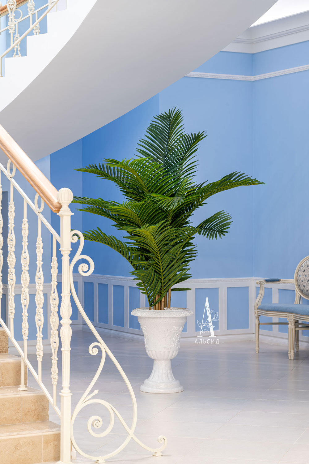 утонченными пальмами и воздушными цветами (