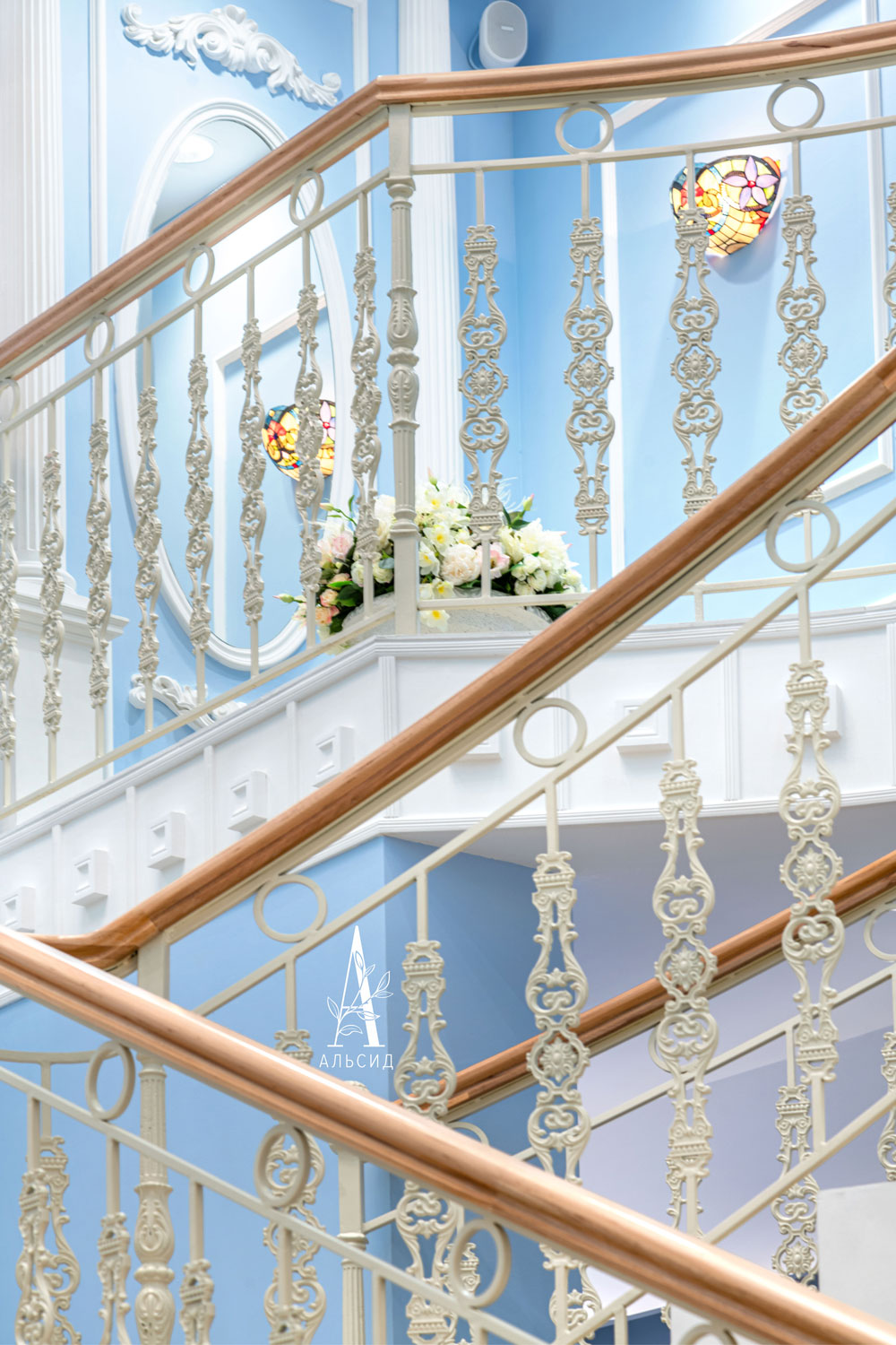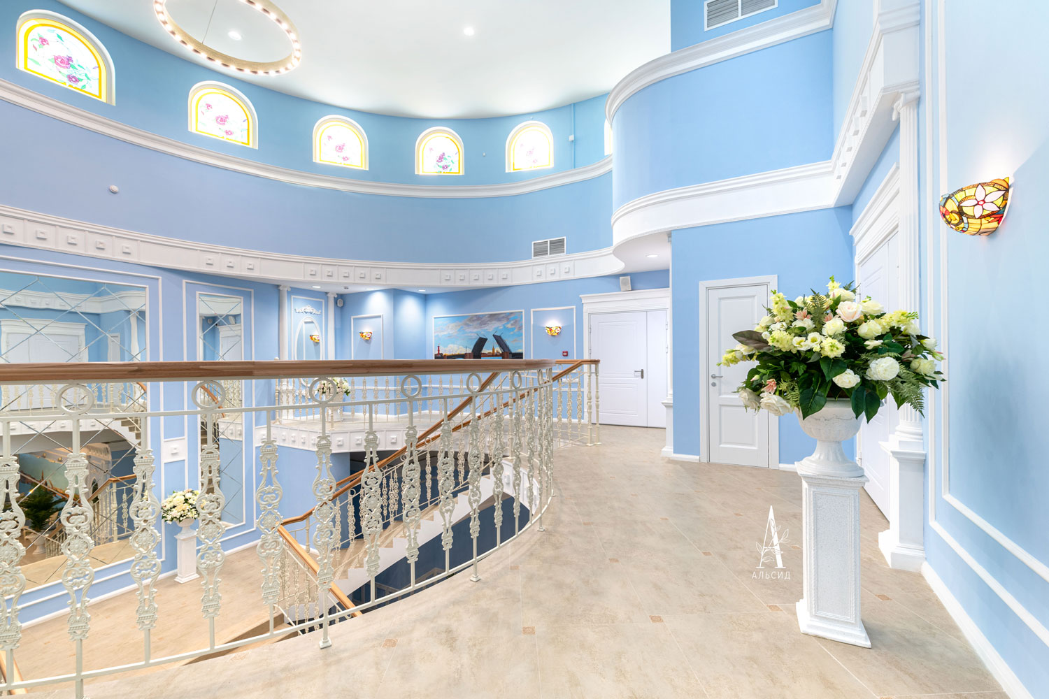роза с гортензией) для парадной лестницы и регистационного зала. В просторных гостевых комнатах хорошо смотрятся