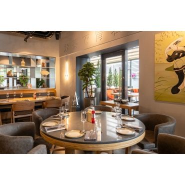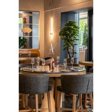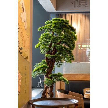 Для оформления японского ресторана было выбрано монодекорирование одинаковыми растениями, что так характеризует культуру и подчеркивает минималистичный стиль. Бонсай Сосна на изящных натуральных стволах идеально вписывается в требуемую концепцию дизайн-проекта.