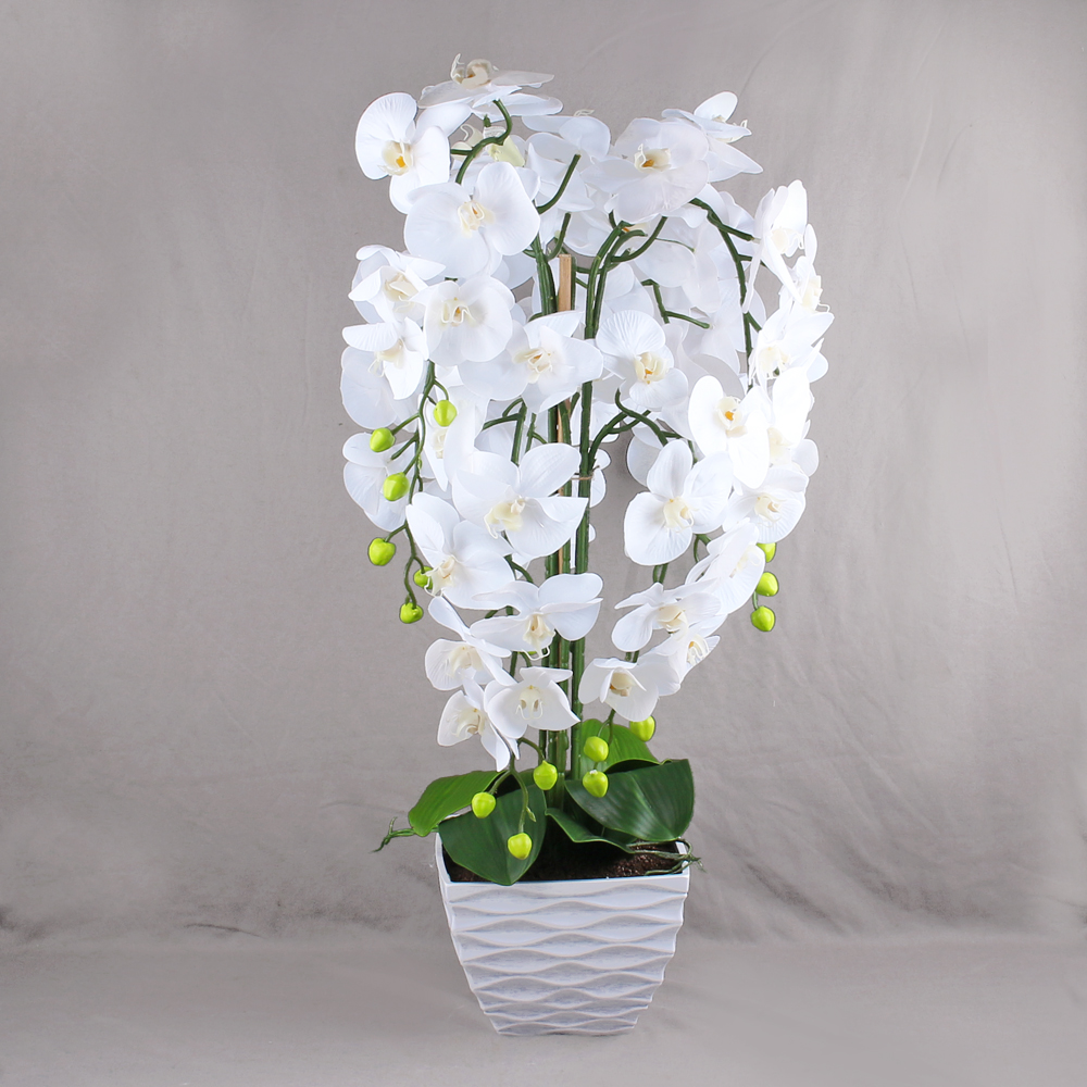 Орхидея Фаленопсис латекс в интерьерном кашпо, белая, h 80 см
