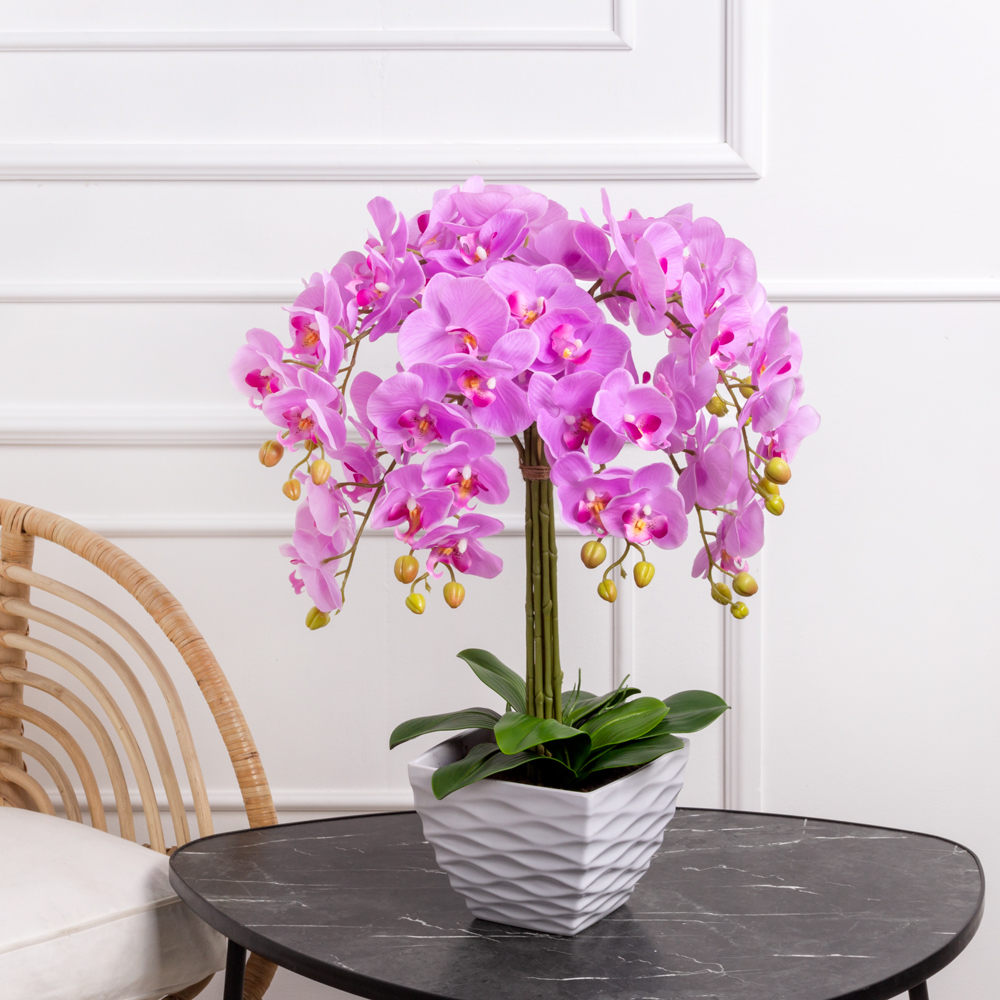 Орхидея Фаленопсис латекс в интерьерном кашпо, малиновая, h 80 см