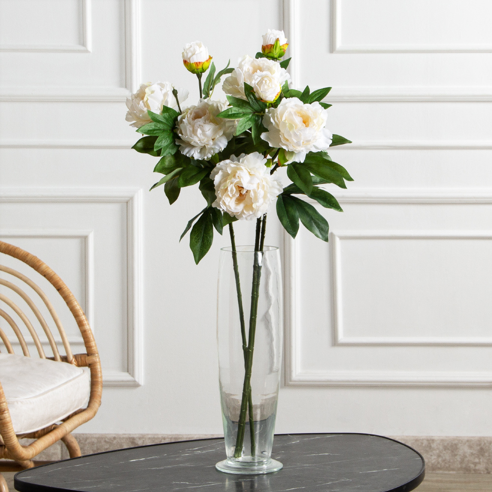 Пион искусственный h77см 2головы 1бутон,кремовый