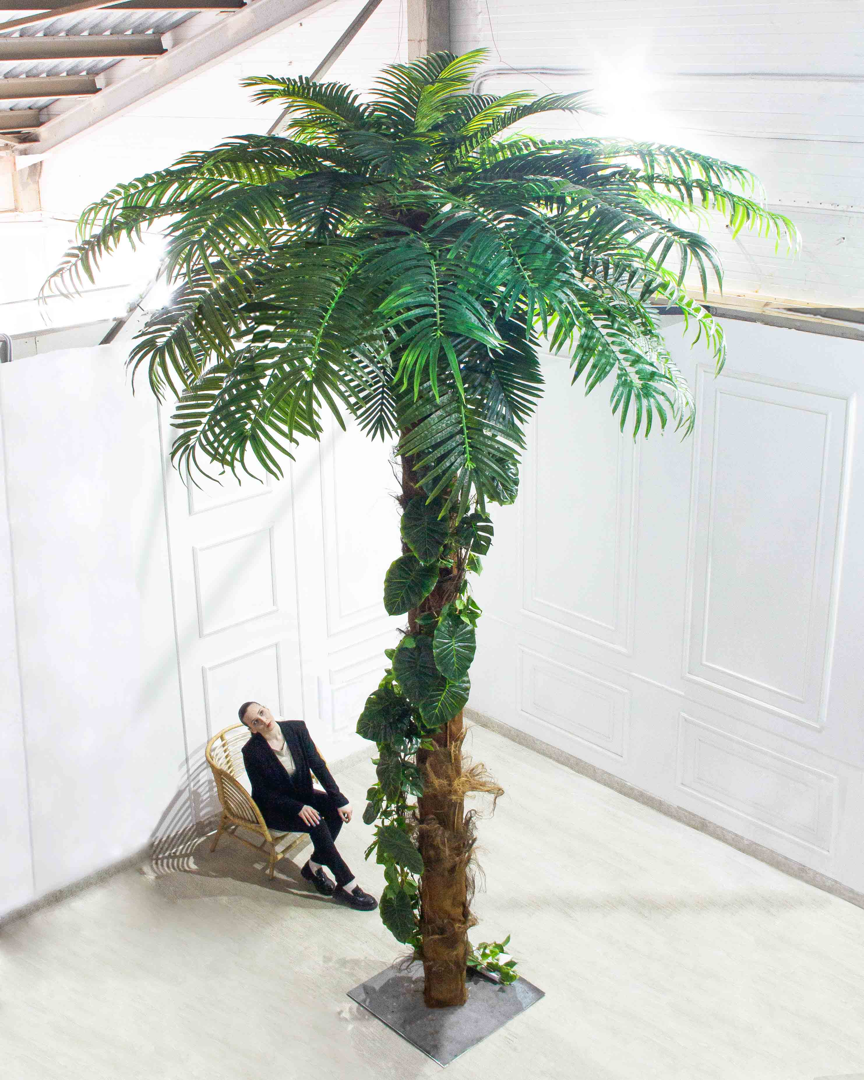 ПС480Разб/Л/49-3(з)(F) Пальма искусственная разборная с лианой h480см на мет.основании