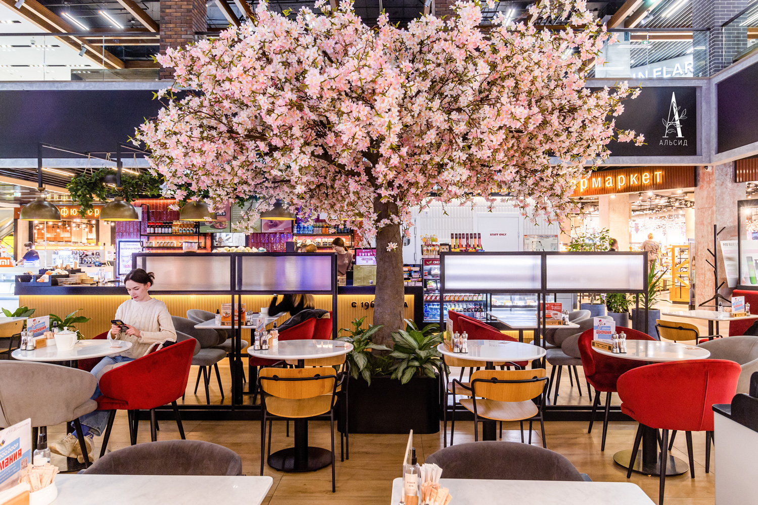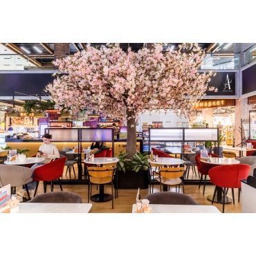 Трехметровая разборная сакура стала главным украшением ресторана "Шоколадница" в Нижнем Новгороде. Нежные цветы сакуры в сочетании с могущественным декоративным стволом добавили изысканности интерьеру ресторана: посетители наслаждаются своими заказми прямо под ветвями этого дерева. Дерево высотой три метра, четыре метра размах кроны..Великолепно! Вы заметите это дерево где бы Вы не находились.