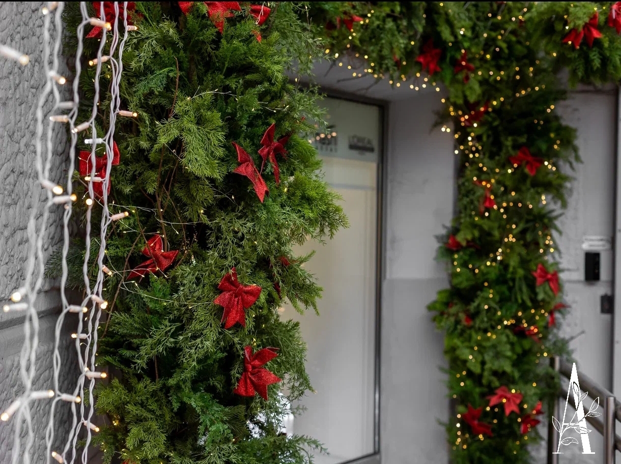 Декор входной группы у входа в салон красоты создаёт атмосферу гармонии и природного очарования, приглашая гостей окунуться в мир спокойствия и ухода за собой. Изящные композиции оживляют пространство, наполняя его свежестью и легкостью, создавая впечатление настоящего цветущего сада прямо здесь, рядом с вами.