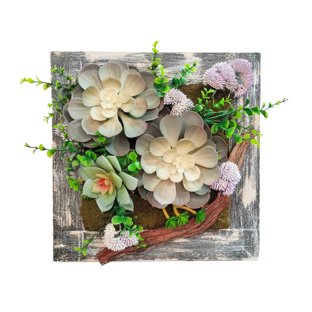 СКФ01-2 Фитокартина искусственная с суккулентами 30х30см в деревянной раме, голубой