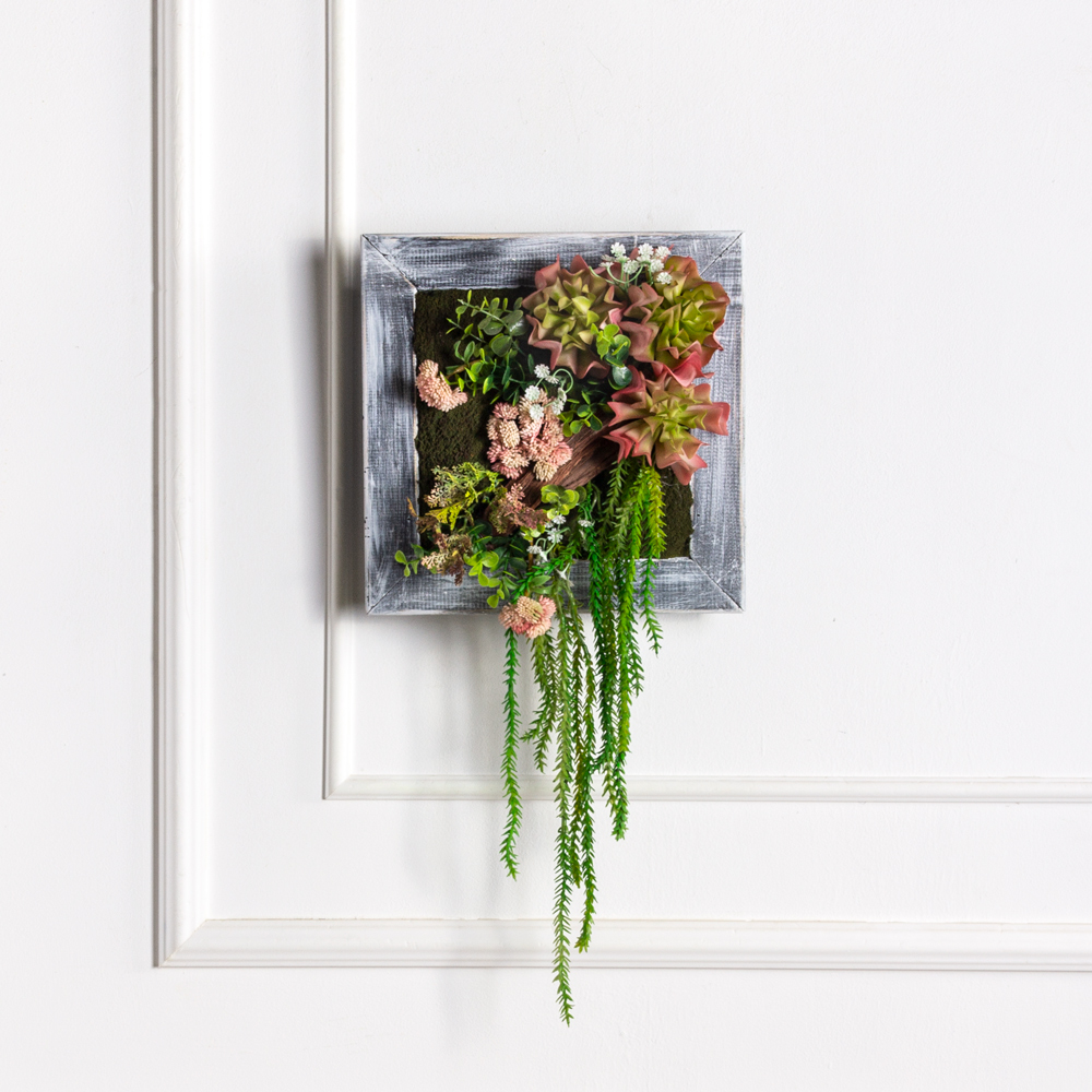 СКФ01-3(F) Фитокартина искусственная с суккулентами 30х30см в деревянной раме, розовый