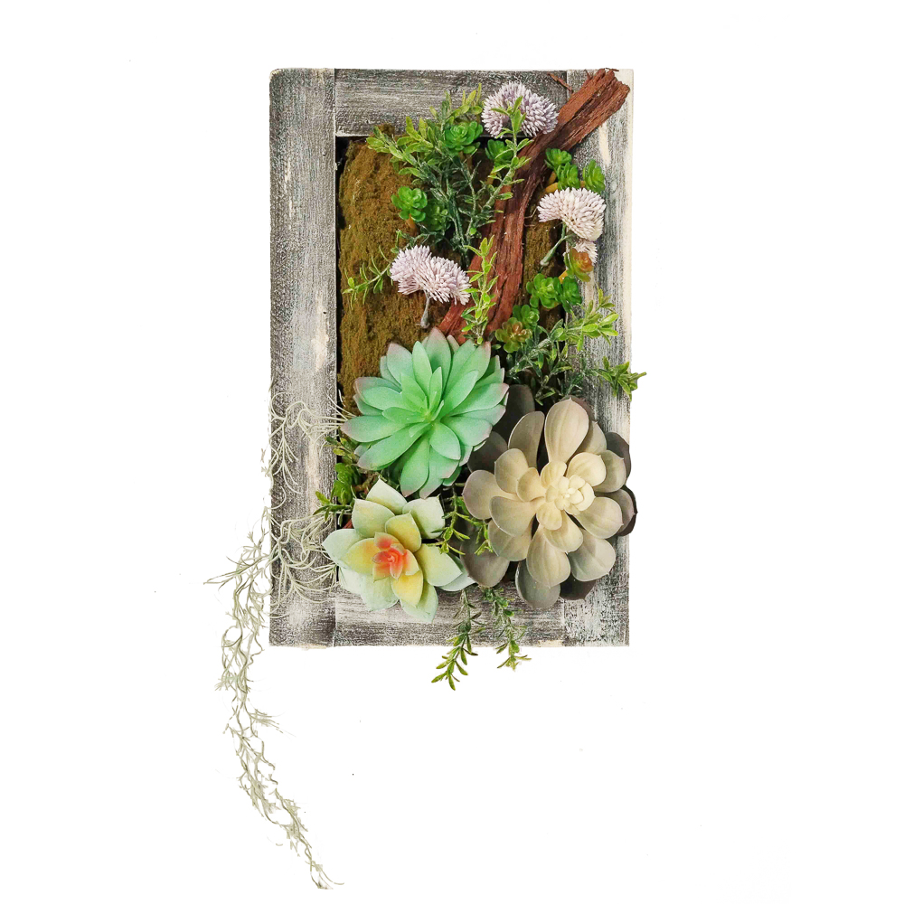 СКФ02-2 Фитокартина искусственная с суккулентами 25х39см в деревянной раме, голубой