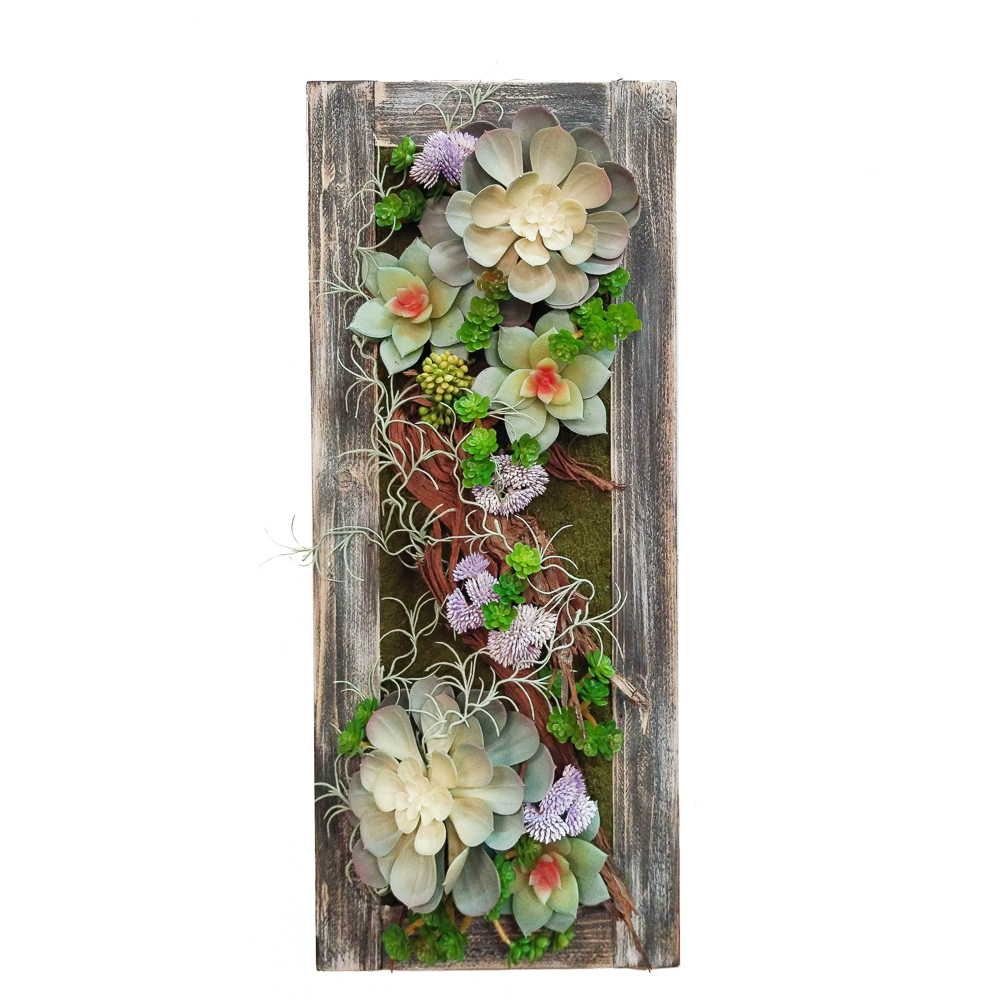 СКФ03-1 Фитокартина искусственная с суккулентами 25х59см в деревянной раме, голубой