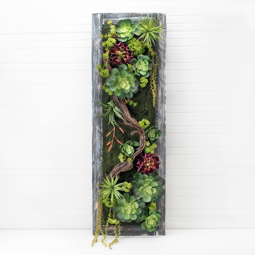 СКФ04-1 Фитокартина искусственная с суккулентами 30х90см в деревянной раме, зеленый