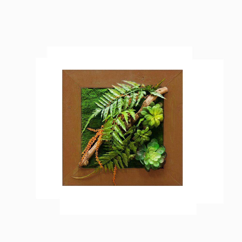 СКФ06/1(з) Фитокартина искусственная с папоротником и суккулентами 50х50см в цветной раме