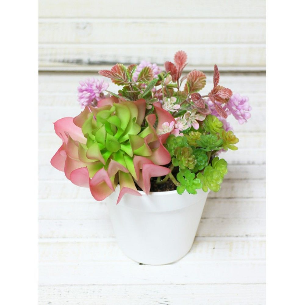 СКК04-1(Sale) Композиция искусственная Суккуленты в интерьерном кашпо, розовые