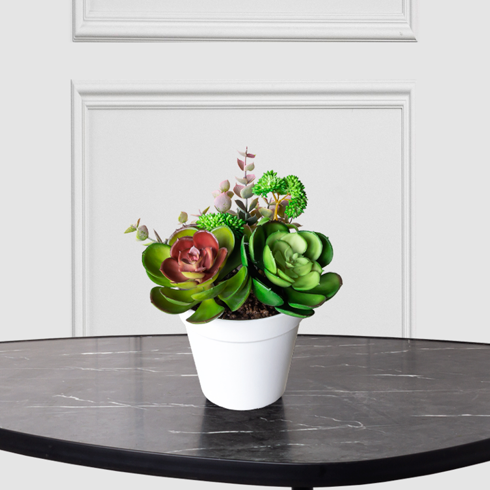 СКК04-3 Композиция искусственная из суккулентов h 17см в интерьерном кашпо, зеленый