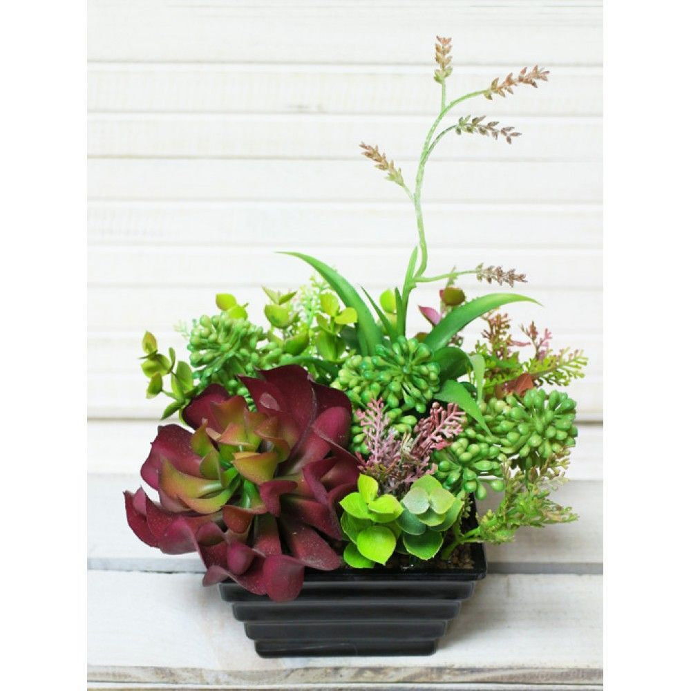 СКК05-4(Sale) Композиция искусственная Суккуленты в интерьерном кашпо, бордовые с зеленым