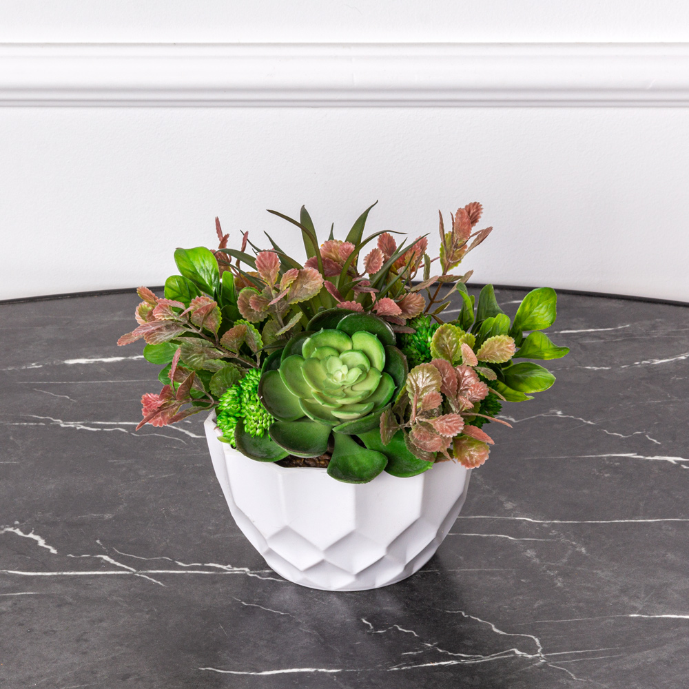 СКК06(Sale) Композиция искусственная Суккуленты в интерьерном кашпо, зеленые