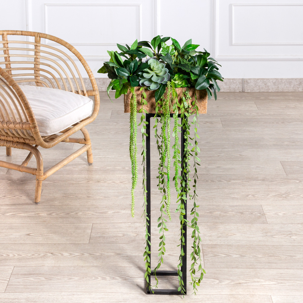 СКК14/7-3/1(з)(F) Композиция из голубых суккулентов с зеленью в кокосовом боксе 30*10*10