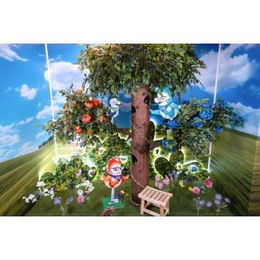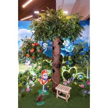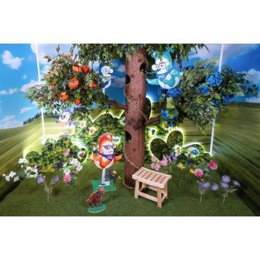 Для московского съезда педиатров было создано удивительное сказочное дерево,украшенное цветами.Тематикой стенда стали лес и его обитатели.Для придания большей антуражности и притягательности внимания были подобраны яркие акцентные решения,чтобы воссоздать настоящий арт-объект и фотозону для посетителей.