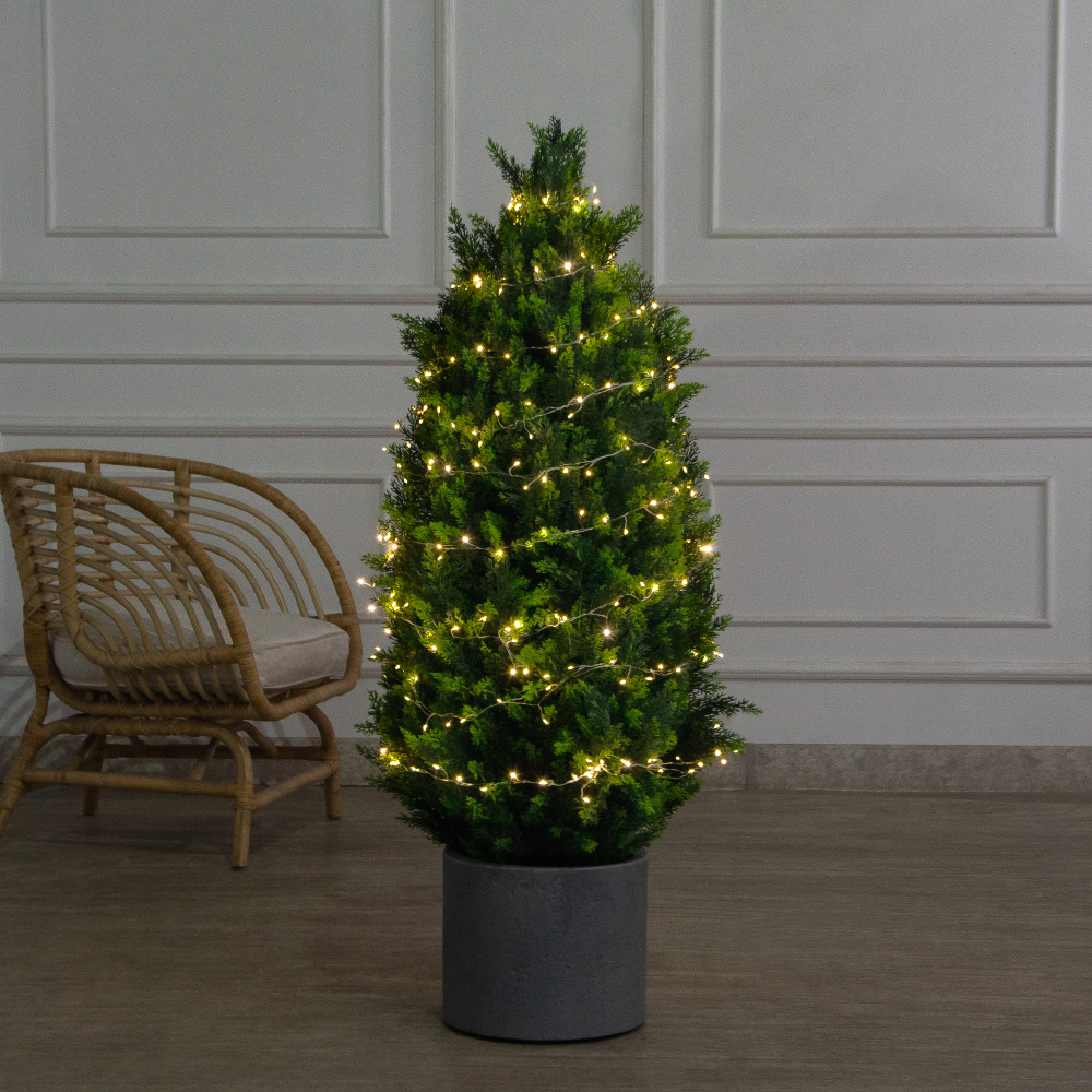 Т120/1460/СВ03т(Пр)(F) Туя искусственная конус h120см с гирляндой Роса