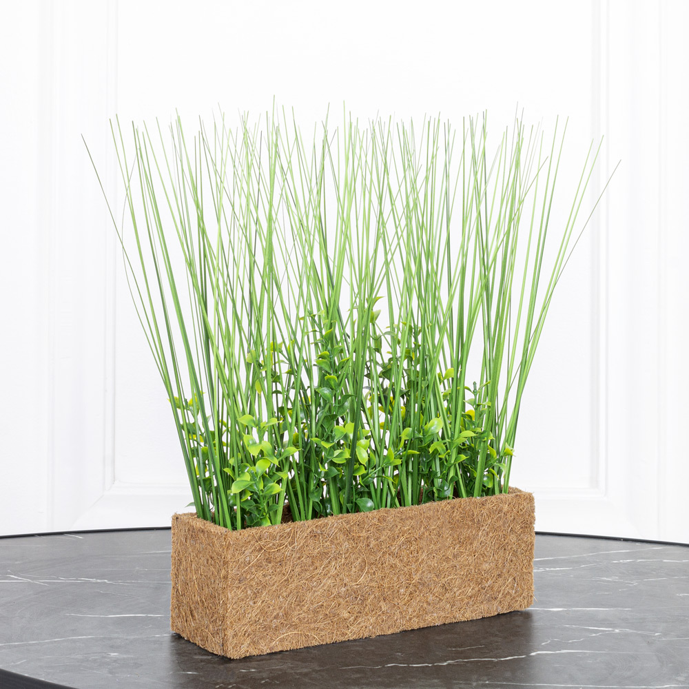 ТД066 Трава Осока искусственная с самшитом h30см в кокосовом боксе 25х8х8см