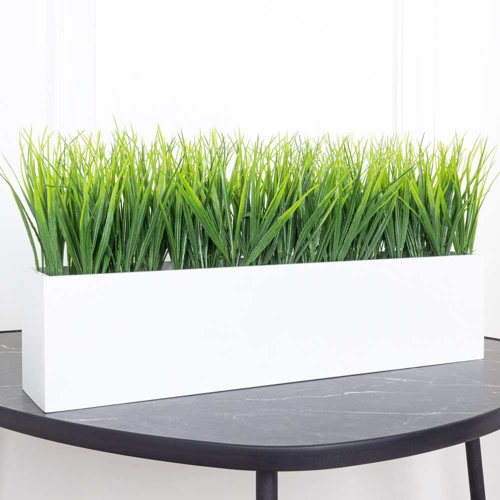 ТДЯ051 Трава искусственная в деревянном белом ящике 50х10хh12см