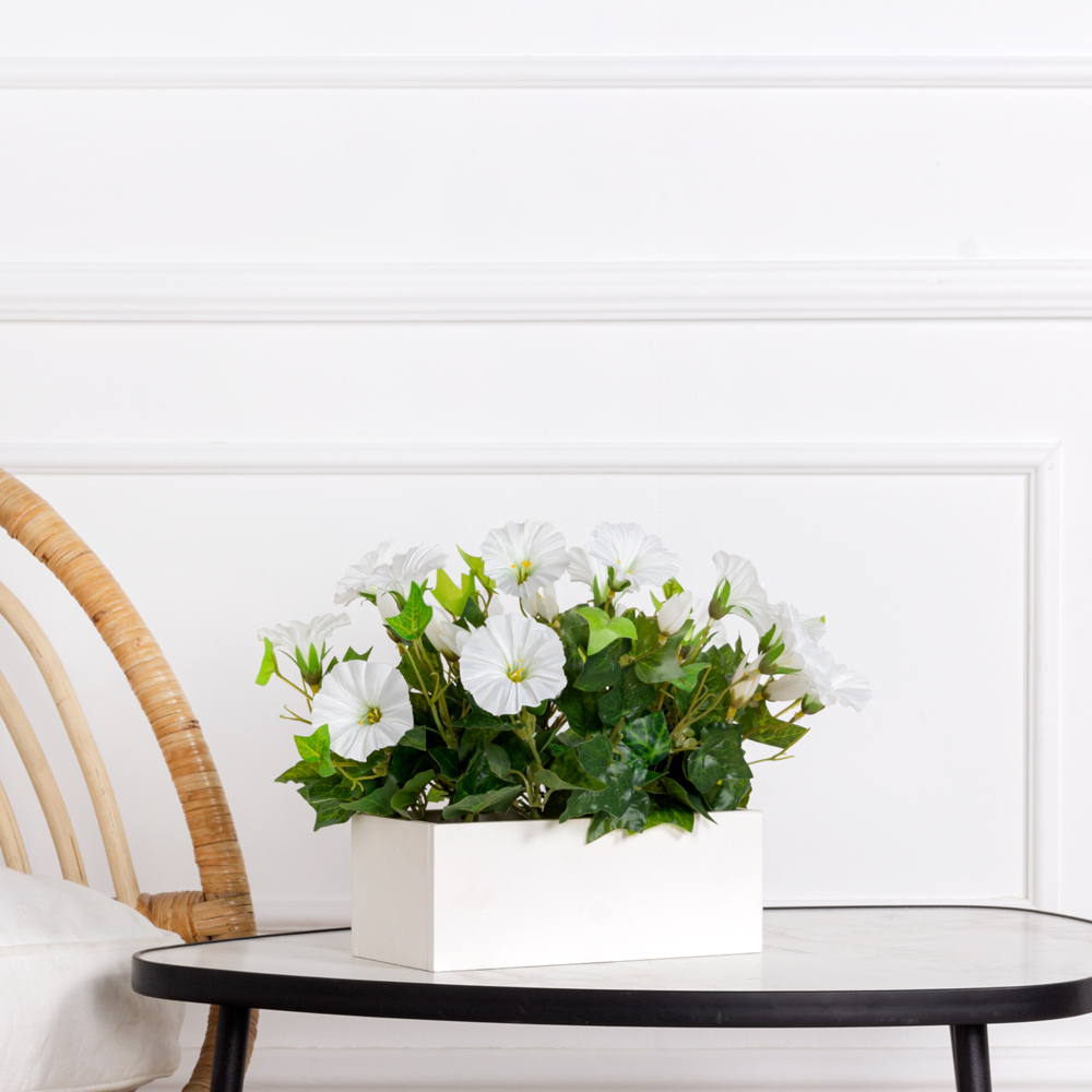 ТДЯ440-1(F) Петуния искусственная белая в деревянном ящике 20х9х8см