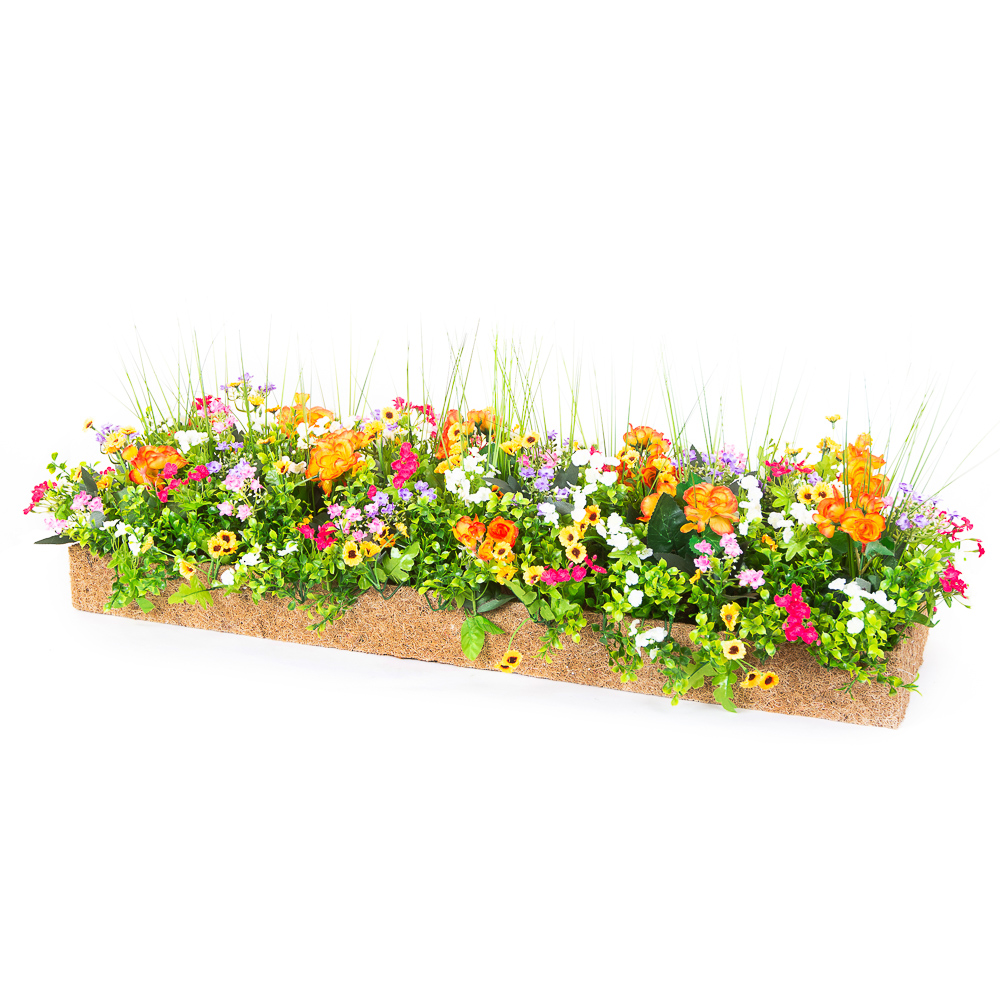 Ц600-6/1(з) Композиция искусственная Разнотравье в кокосовом боксе 100х30х8см
