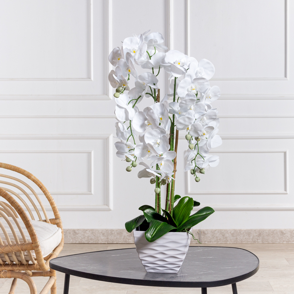ЦК80*5/33-1(Пр)(F) Орхидея Фаленопсис искусственная h80см (латекс) в интерьерном кашпо, белая
