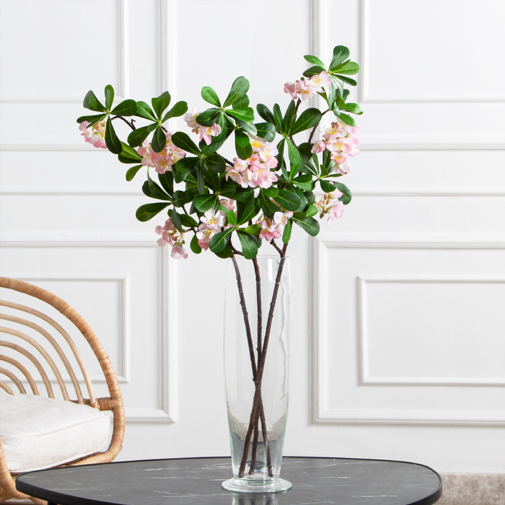 Ветка яблони искусственная h74см(4 соцветия) розовая
