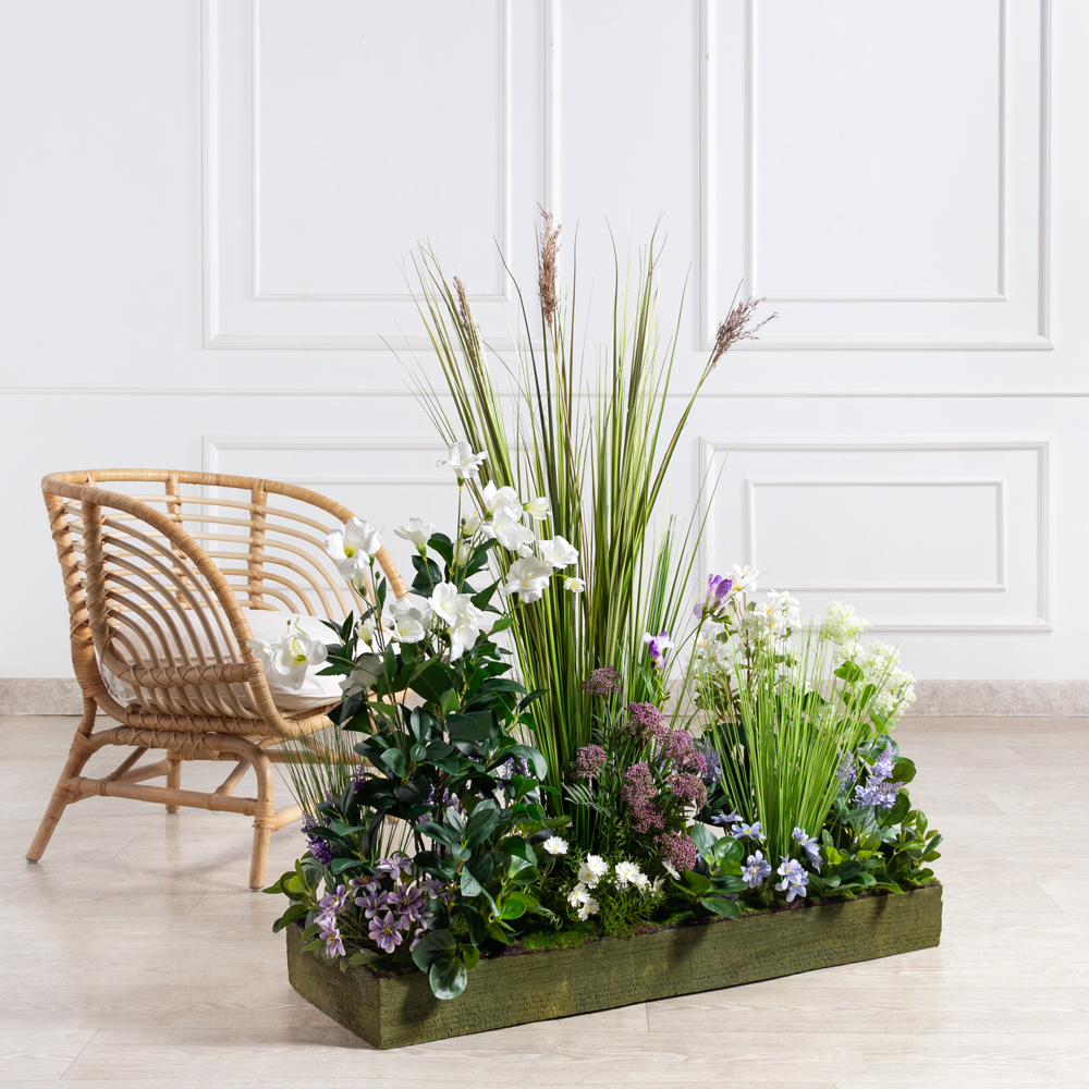 ВМ105(з)(F) Композиция искусственная Цветочный луг на вставке 98х35х10см