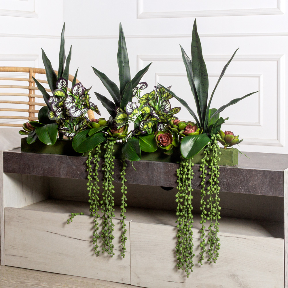 ВМ84(з)(Пр)(F) Композиция искусственная Микс с Сансевиерией на вставке 85х5х5см
