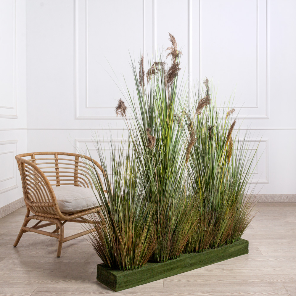 ВМ85(з)(Пр)(F) Композиция искусственная Трава Осока с камышом h120-150см на вставке 115х24х10см