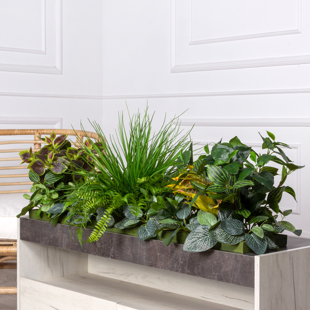 ВМ9(з)(F) Композиция искусственная Зелень микс h30см на основании 100х18х3см