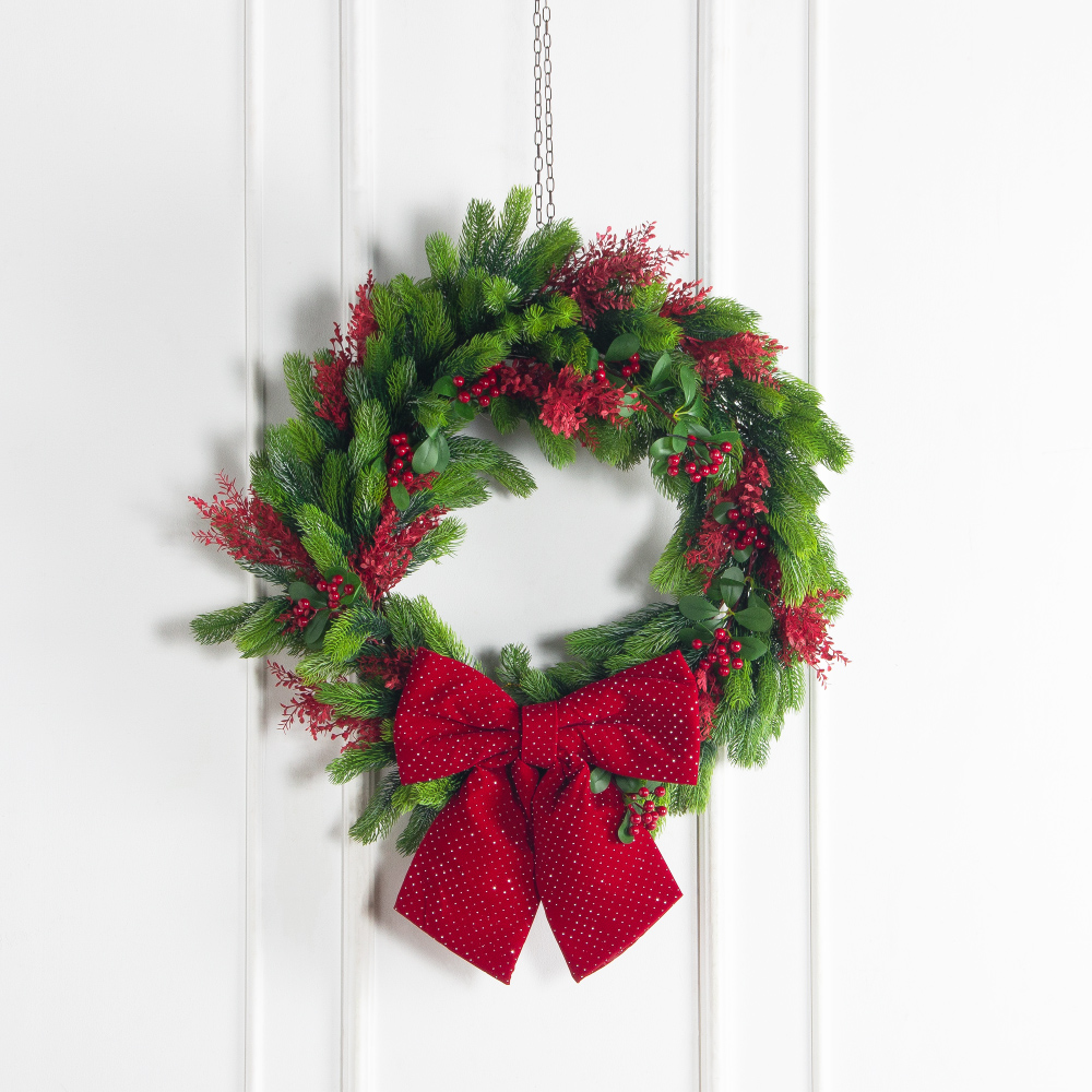 ВН15-2(Пр)(F) Венок искусственный НГ d70см, с красным декором